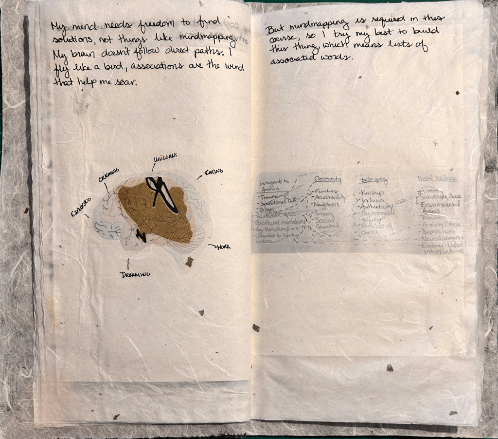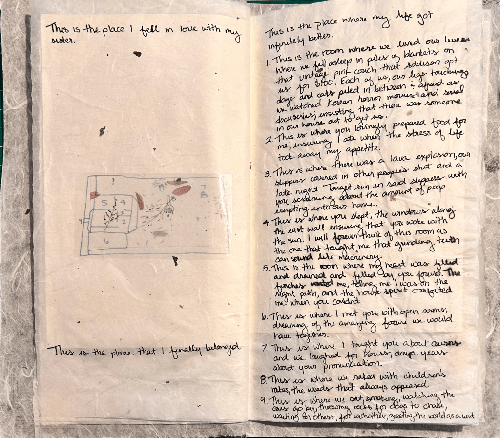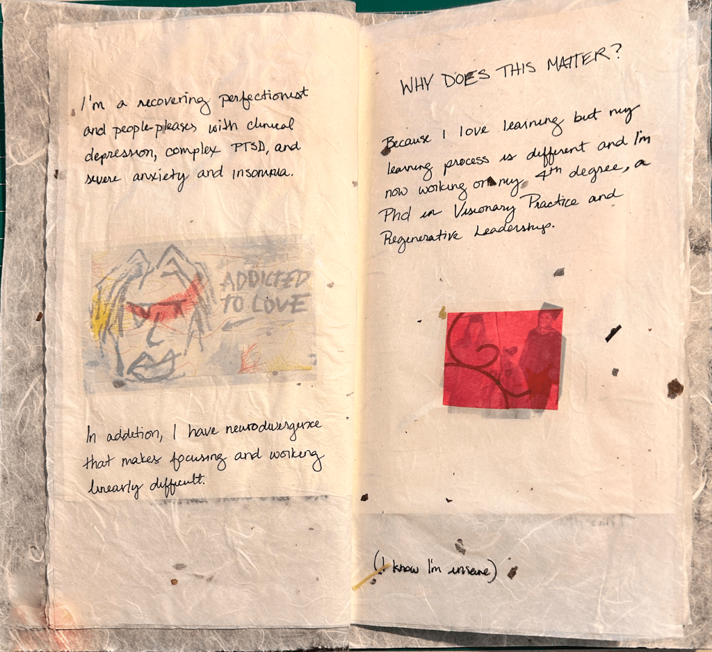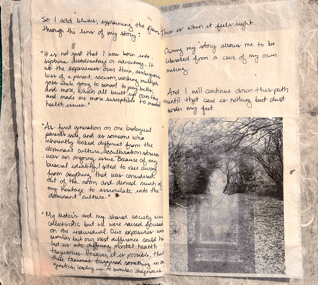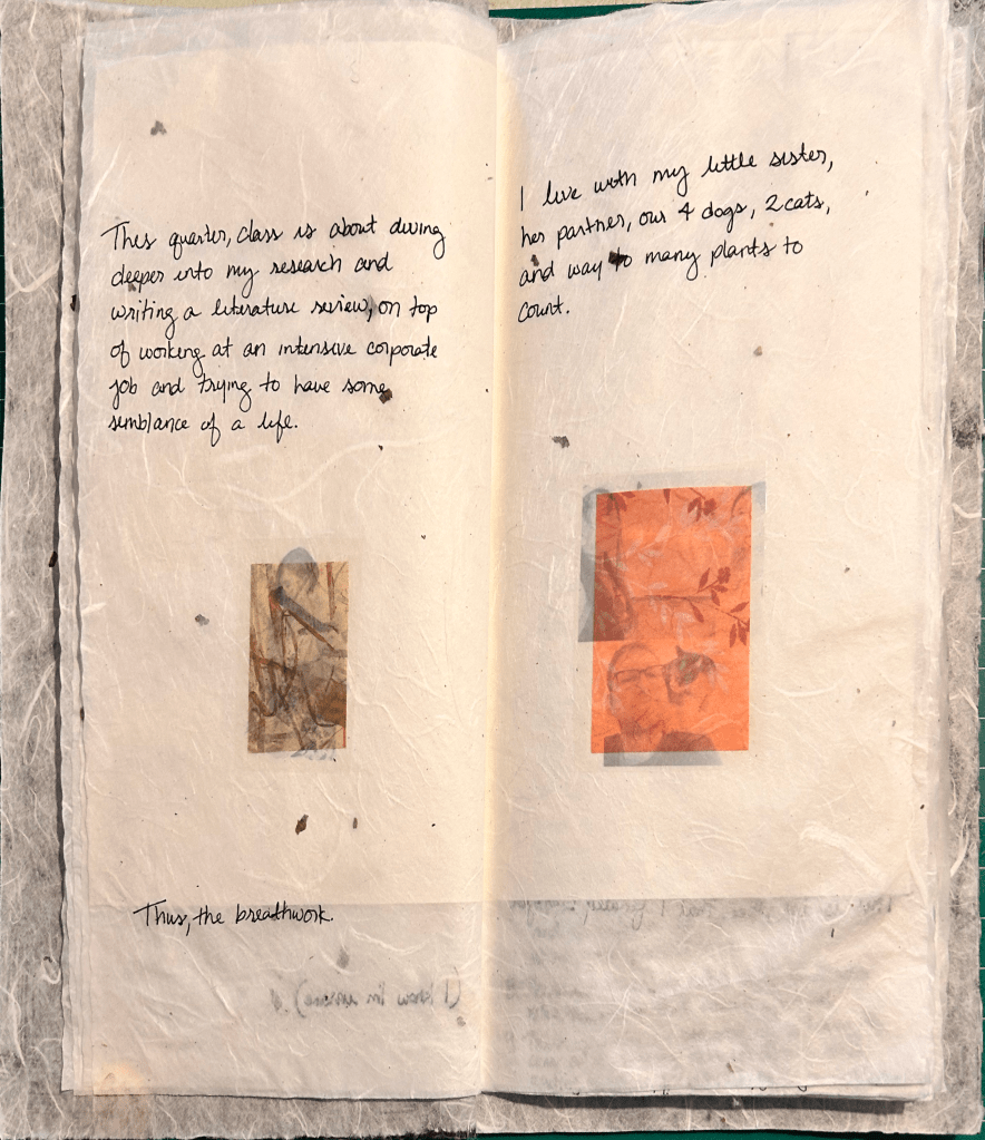 Zine created using traditional Korean book-making techniques on mulberry paper and printable sticker paper.
