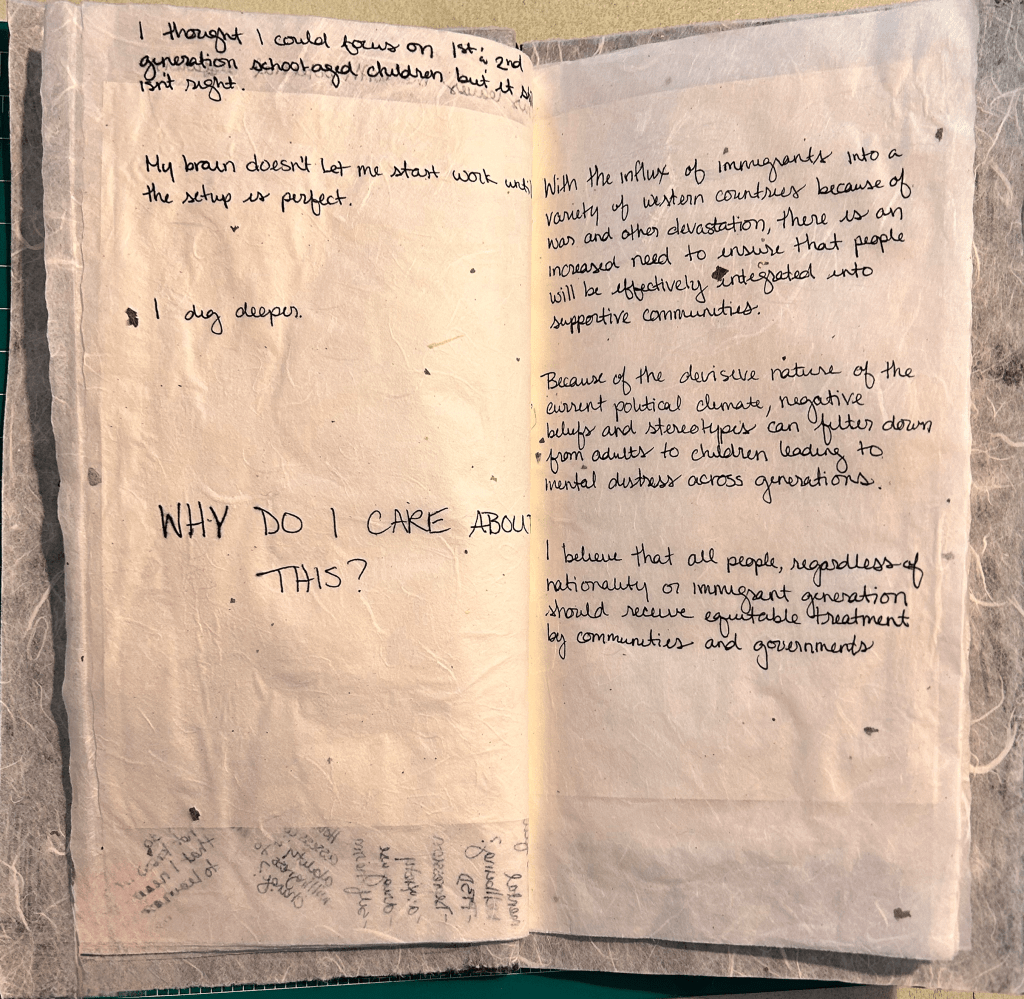 This project was taken on as a test for my dissertation research, in which I plan on having co-arting sessions with participants and determining if engagement with heritage crafts can lead to increased overall sense of wellbeing. An interesting finding in these sessions was that four out of the five contributors mentioned family or ancestors as an inspiration for a part of their identity squares. To me, this means that this is a perfect art engagement for my dissertation research and have decided that these identity squares will be planned as the first engagement with my research participants.