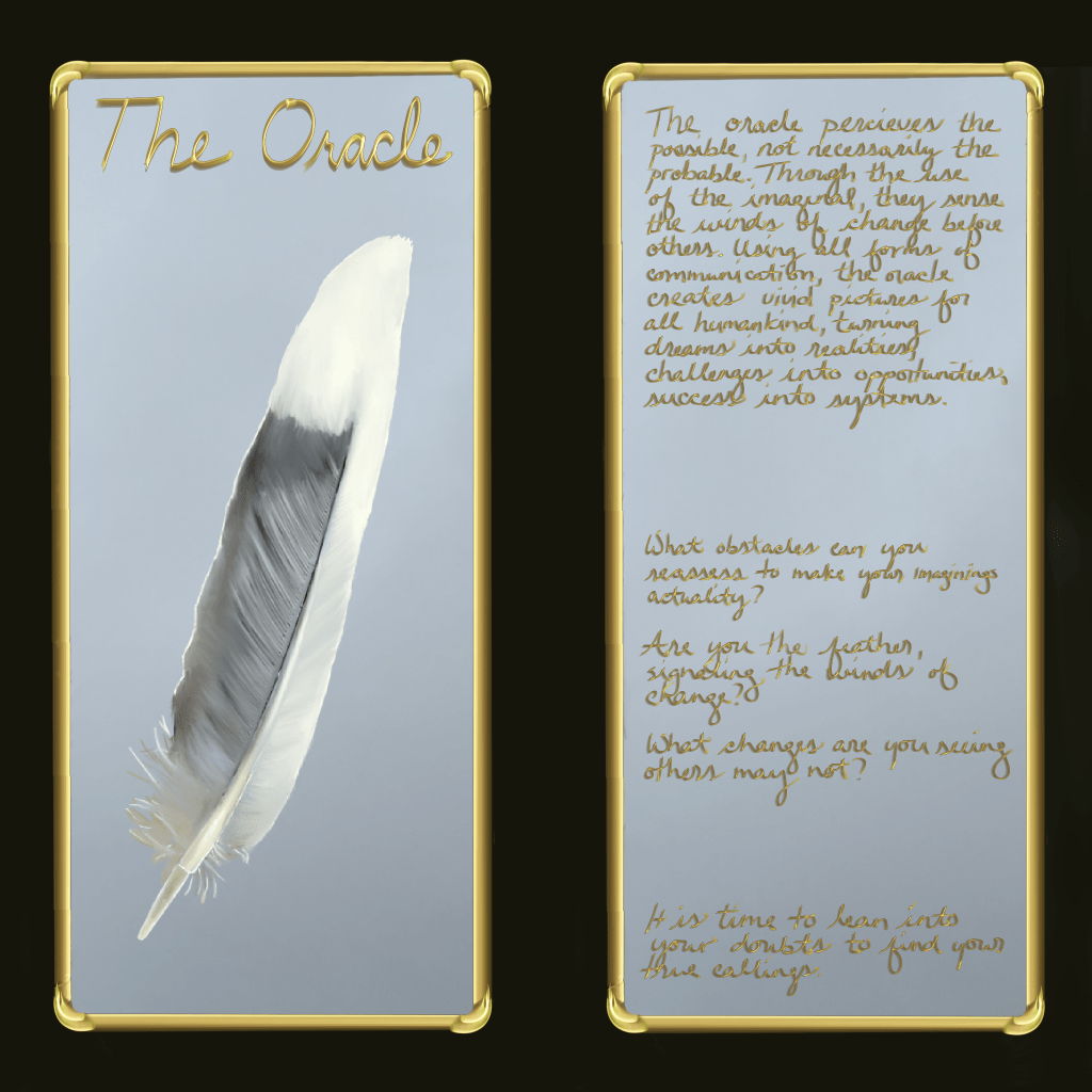 This piece was created over a 10 week period. The border was created from oracle cards that were pulled daily. The drawings were done using traditional Asian techniques that were updated through digital creation. Each frame was hand-drawn by recreating historical Korean patterns. All pieces were created on my iPad using Procreate and my Apple Pencil.
